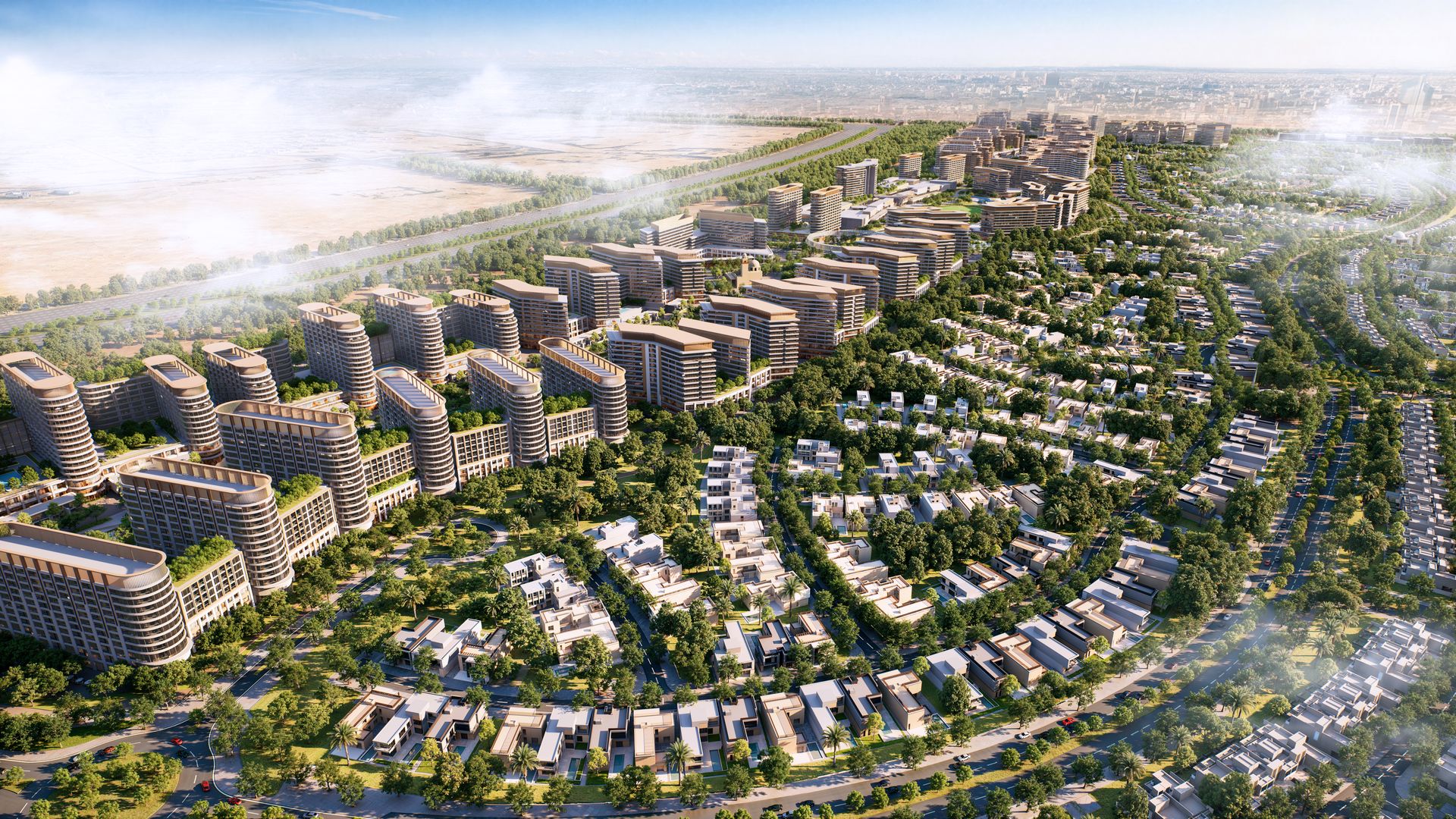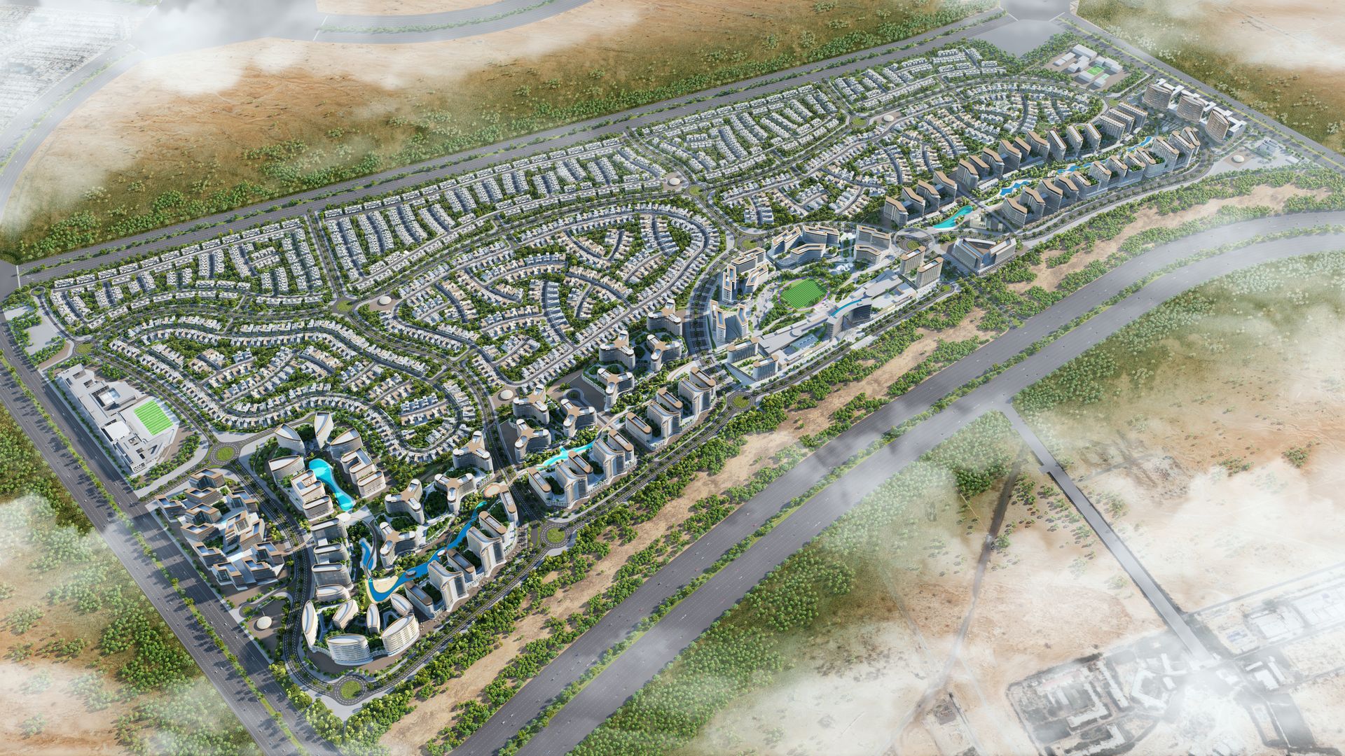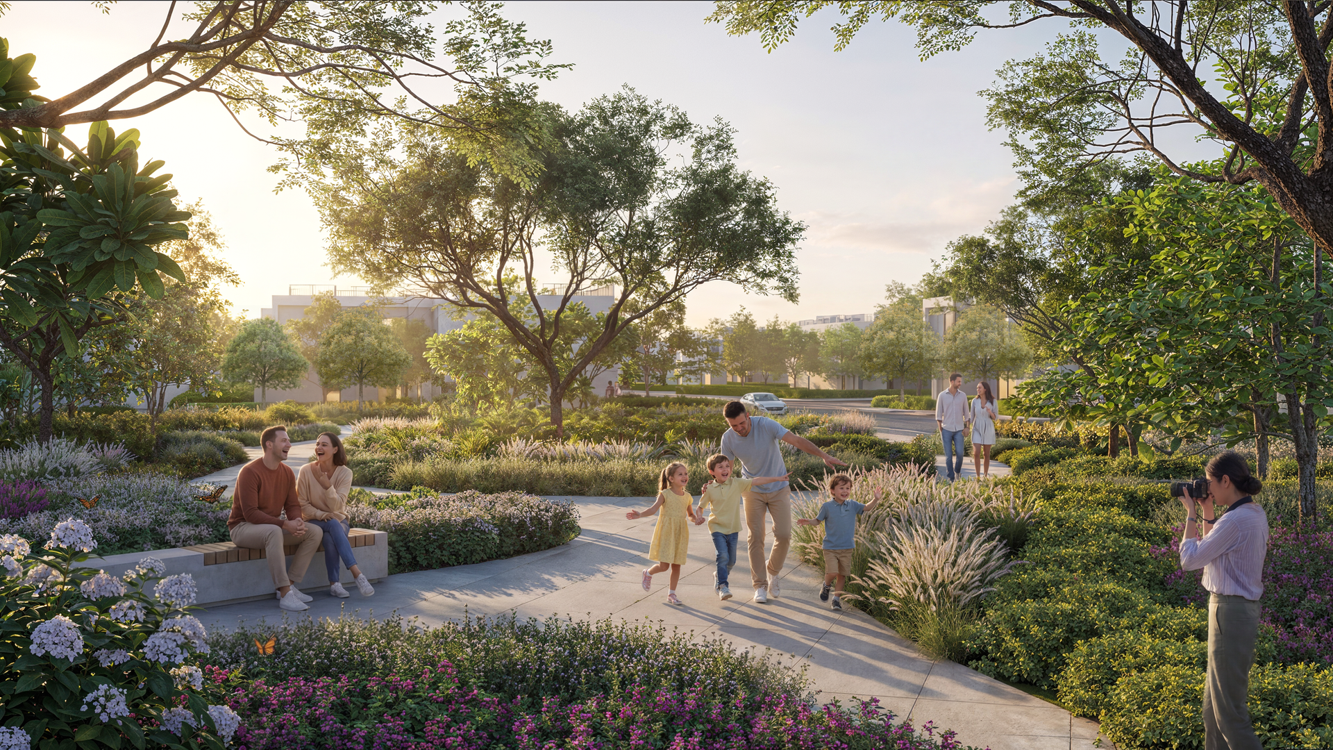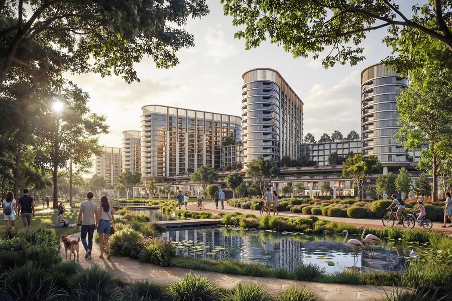 Met een indrukwekkende omvang van meer dan 38 miljoen vierkante voet is deze laag-dichtheidswijk ontworpen als een rustgevende stedelijke oase, waarbij meer dan 40% van het totale gebied is gereserveerd voor weelderige groene zones, dichte bossen en schitterende waterpartijen.