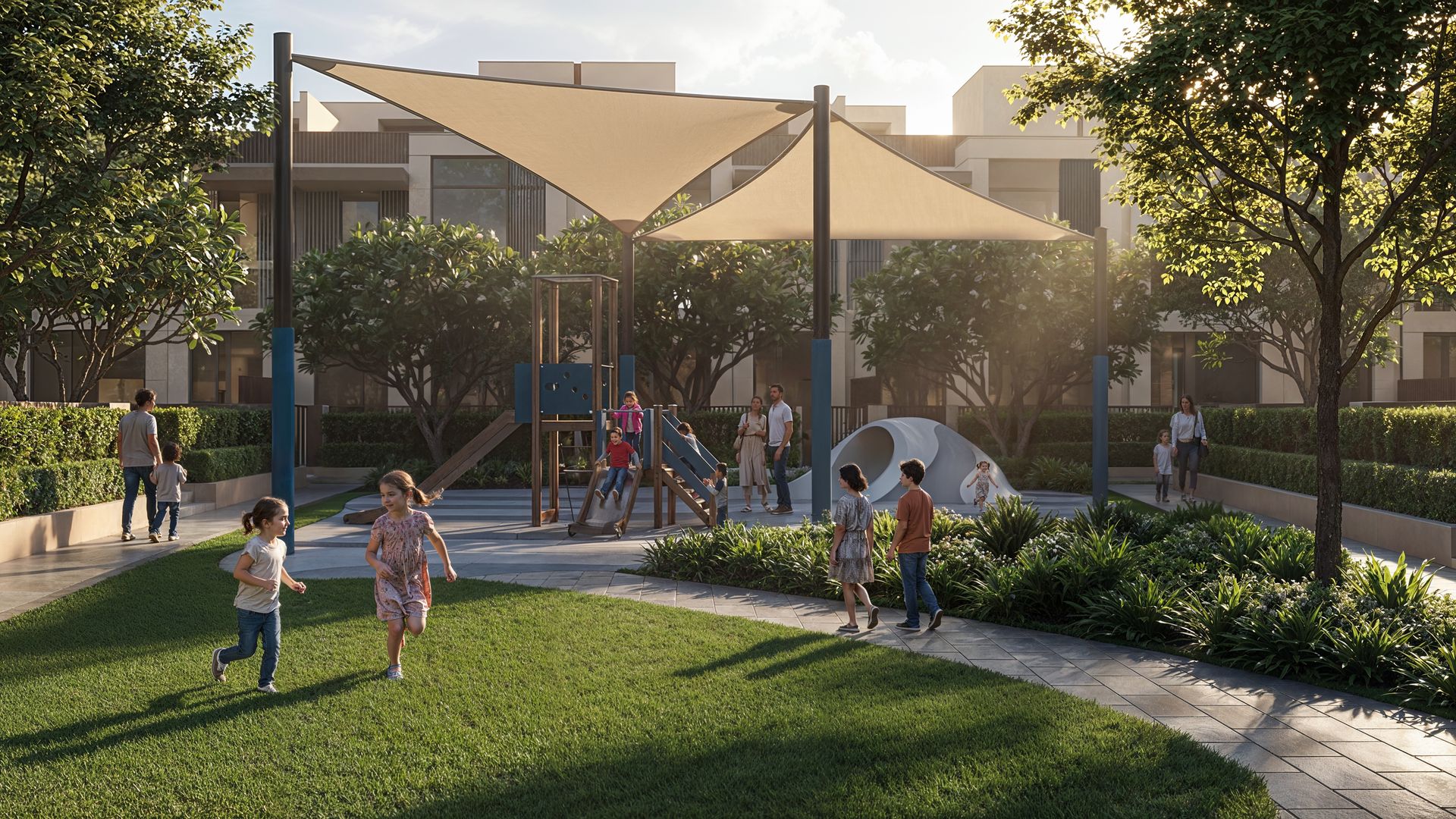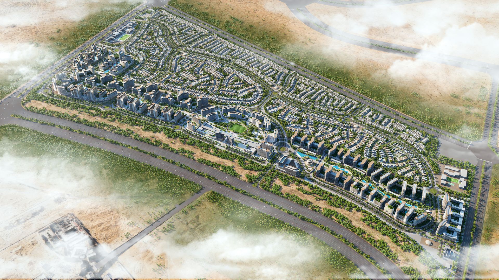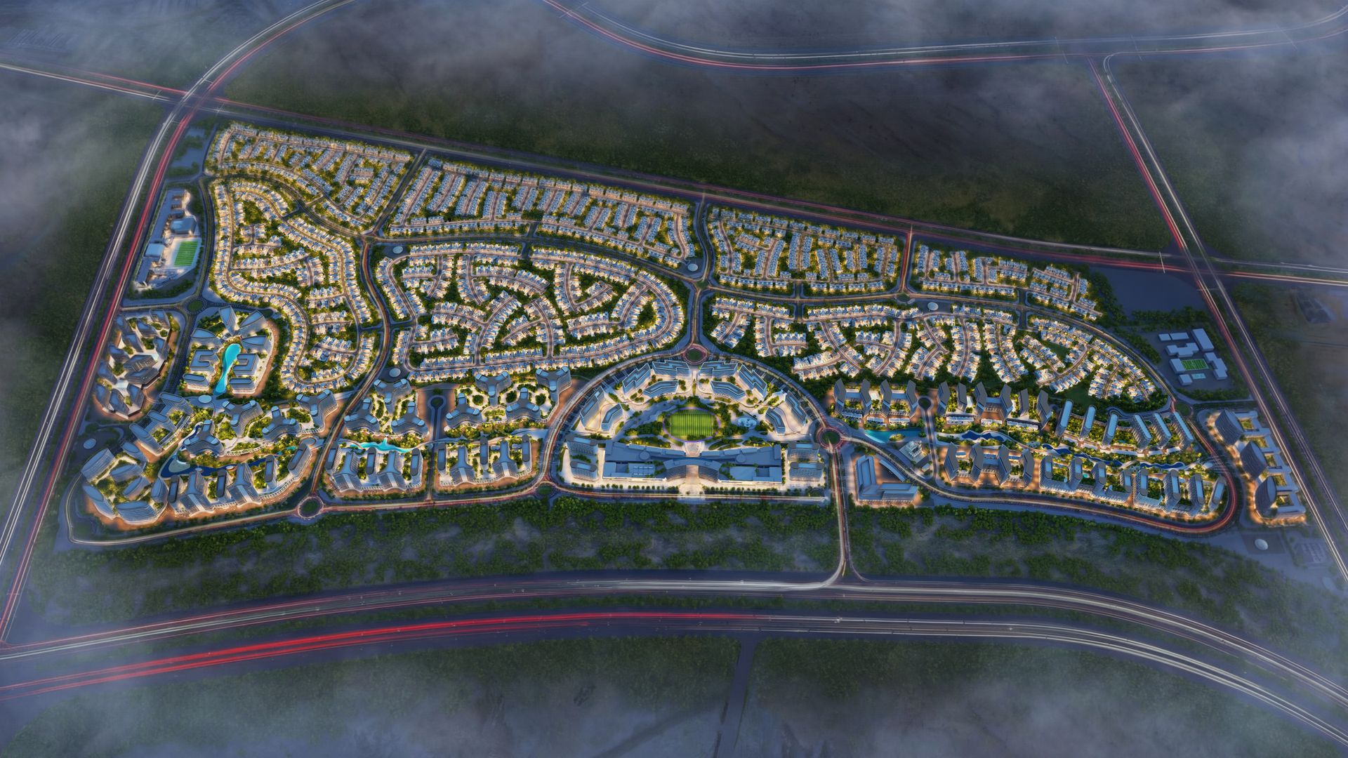 Met een indrukwekkende omvang van meer dan 38 miljoen vierkante voet is deze laag-dichtheidswijk ontworpen als een rustgevende stedelijke oase, waarbij meer dan 40% van het totale gebied is gereserveerd voor weelderige groene zones, dichte bossen en schitterende waterpartijen.