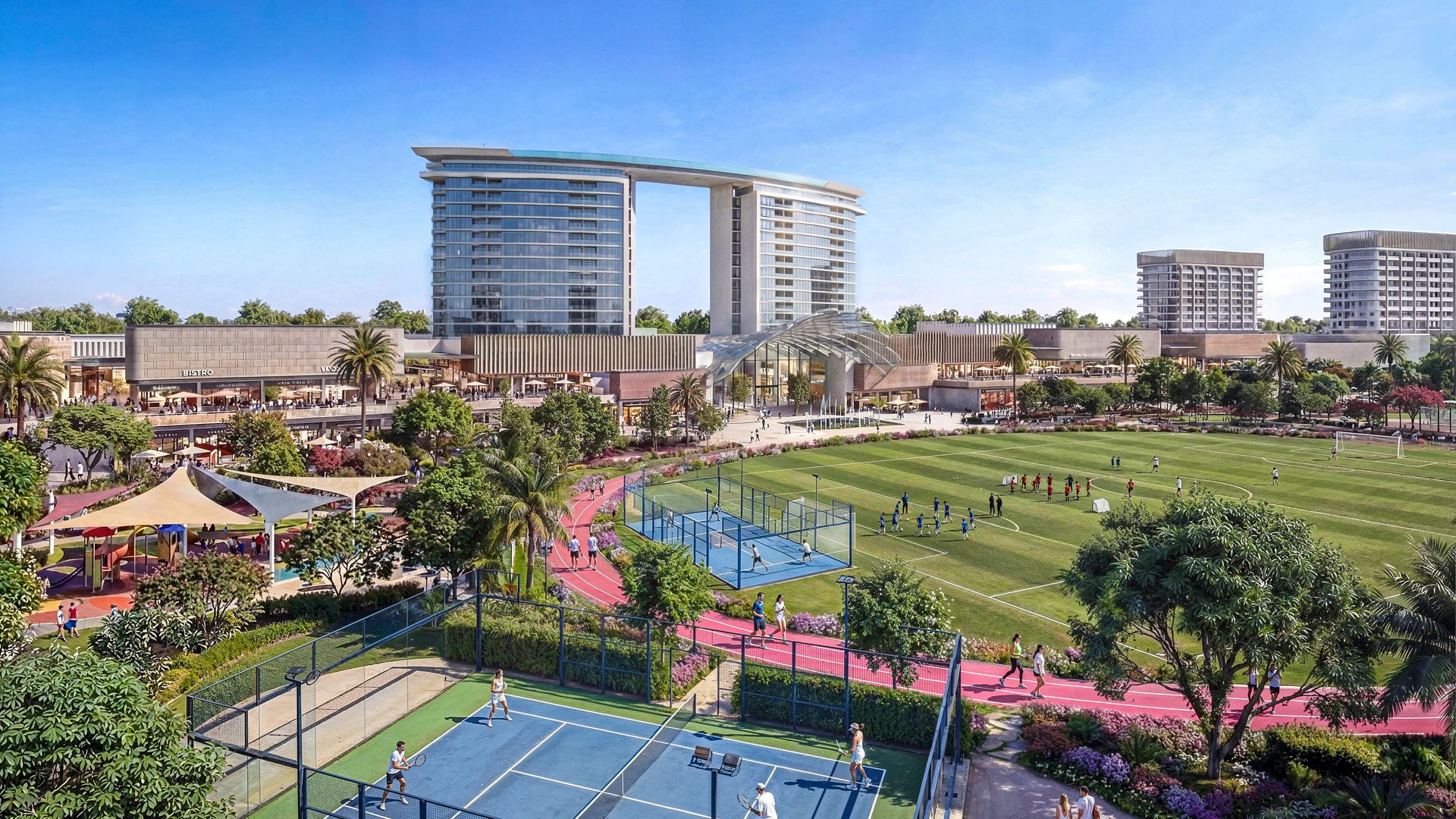 De community bestaat uit een exclusieve collectie van slechts 2.200 ultra-luxe villa’s, verdeeld over zorgvuldig vormgegeven deelgebieden die aansluiten op verschillende leefstijlen. Bewoners kunnen kiezen voor The Grove, een wijk omgeven door diepe groenzones en eeuwenoude bomen, of voor The Brooks, waar rustgevend wonen aan het water langs de lagune centraal staat.