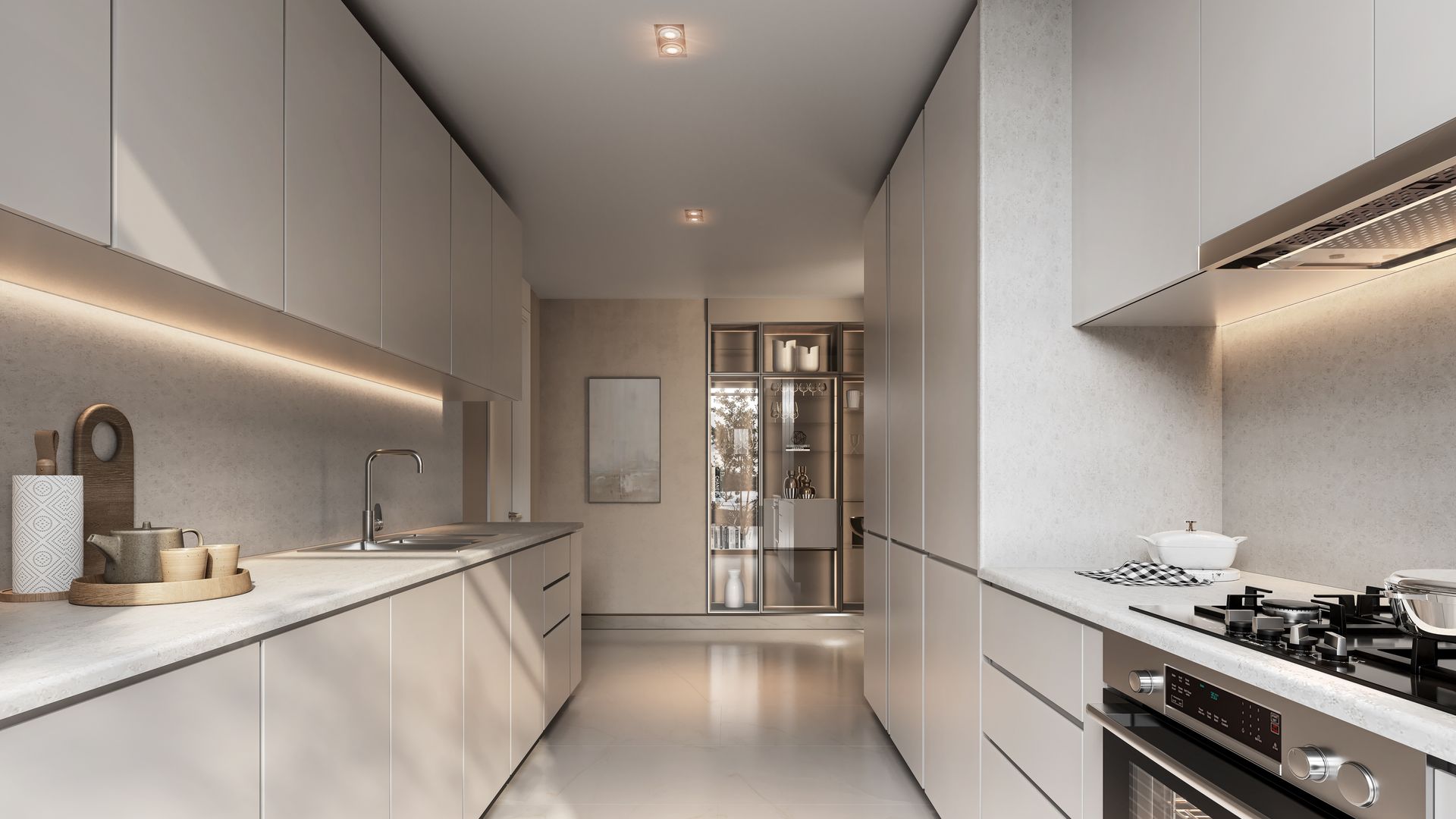 Binnen is alles ontworpen met rust en functionaliteit als uitgangspunt. Moderne, op maat gemaakte inbouwkasten met verfijnde afwerking. Badkamers die aanvoelen als een privésuite in een vijfsterrenhotel. Keukens die niet alleen esthetisch kloppen, maar ook praktisch zijn ingericht met hoogwaardige apparatuur en slimme indeling.